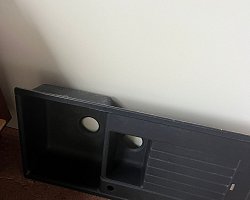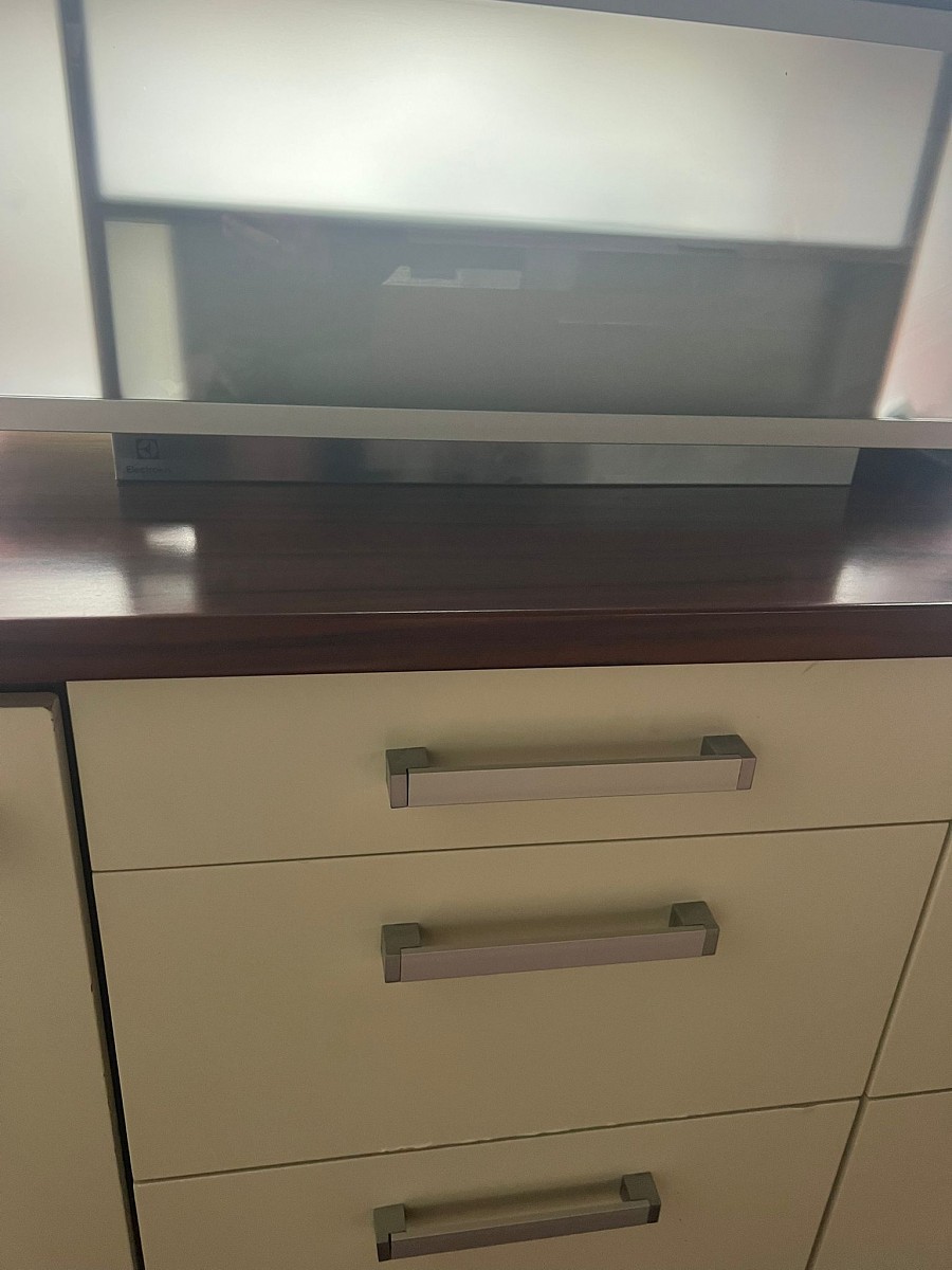 Součástí: Horkovzdušná trouba, sklokeramická deska, digestoř, dřez, baterie