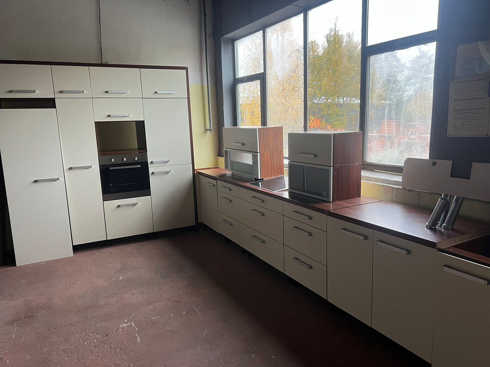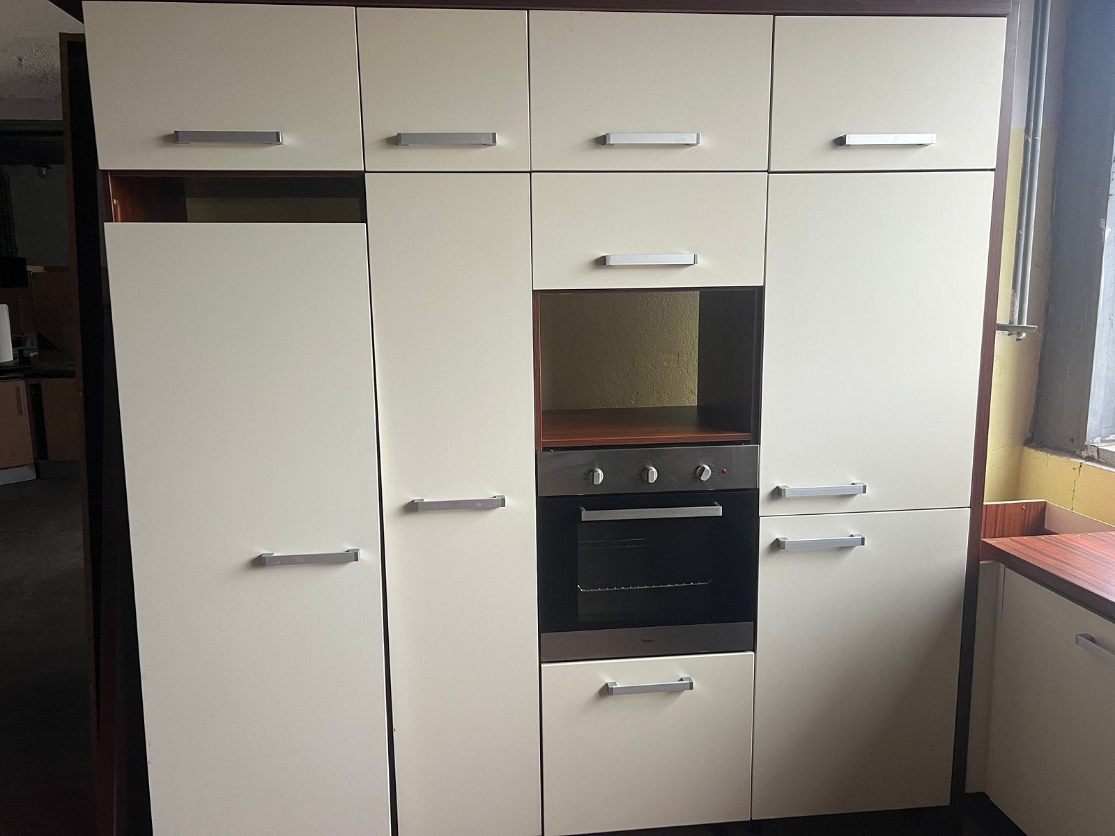 Krásná smetanová kuchyňská linka se spotřebiči
