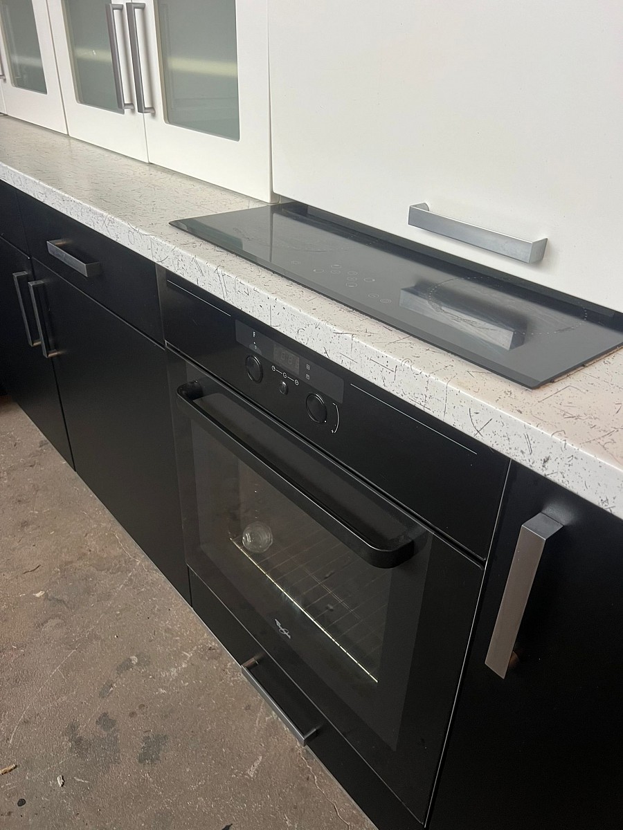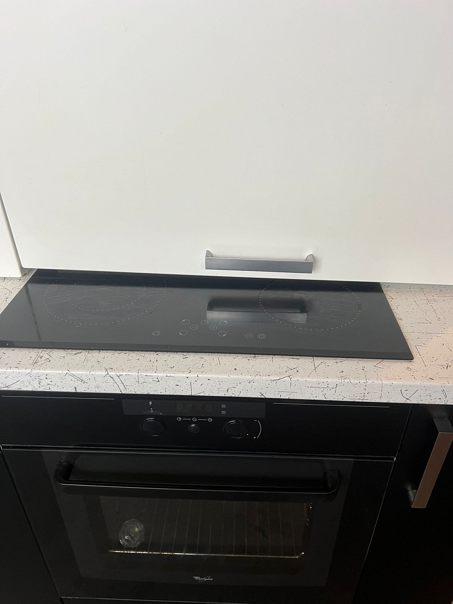 Součástí: Horkovzdušná trouba Whirlpool, sklokeramická deska, lednice, dřez, baterie, digestoř