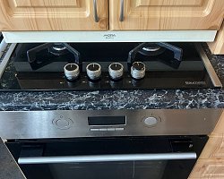 Součástí: Horkovzdušná trouba, plynová deska, myčka, digestoř