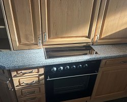 Součástí: Horkovzdušná trouba, sklokeramická deska, digestoř, lednice Bosch, myčka, keramický dřez, baterie
