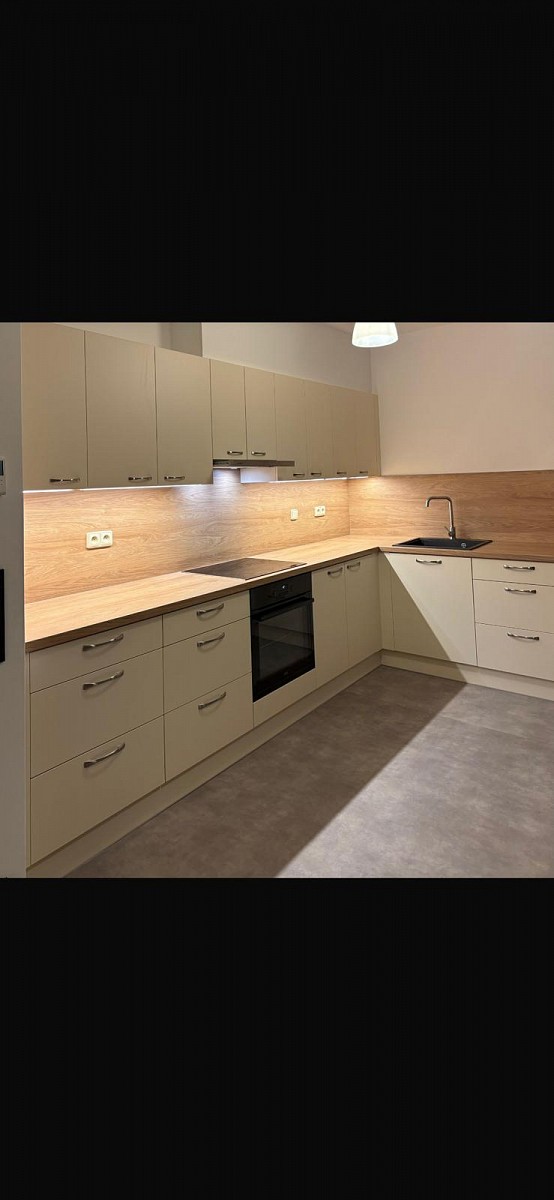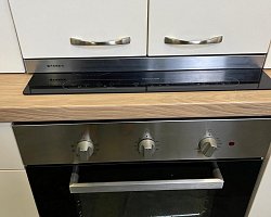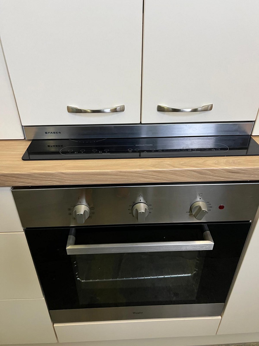 Součástí: Horkovzdušná trouba zn. Whirlpool, indukční deska, digestoř, dřez a baterie